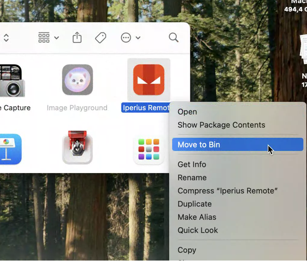 For MacOS, you need to move the Iperius Remote app from Applications to Bin: