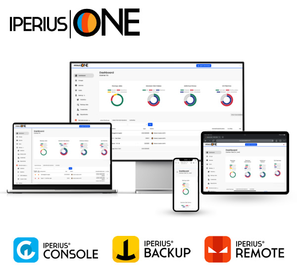 The all-in-one RMM platform that brings together Iperius Backup, Iperius Console and Iperius Remote in a single professional solution. Manage cloud and on-premise backups, monitor system health, control security patches and access devices remotely, all from one centralized web dashboard.